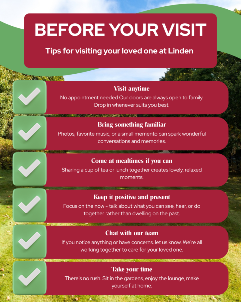 ✓ No appointment needed – drop in anytime✓ Bring photos or something familiar✓ Share a cuppa or meal together✓ Keep conversations positive and present✓ Let our team know if you need anything✓ Take your time—you’re always welcome Every visit matters. We’re here to help make each one meaningful. 📞 01827 899227