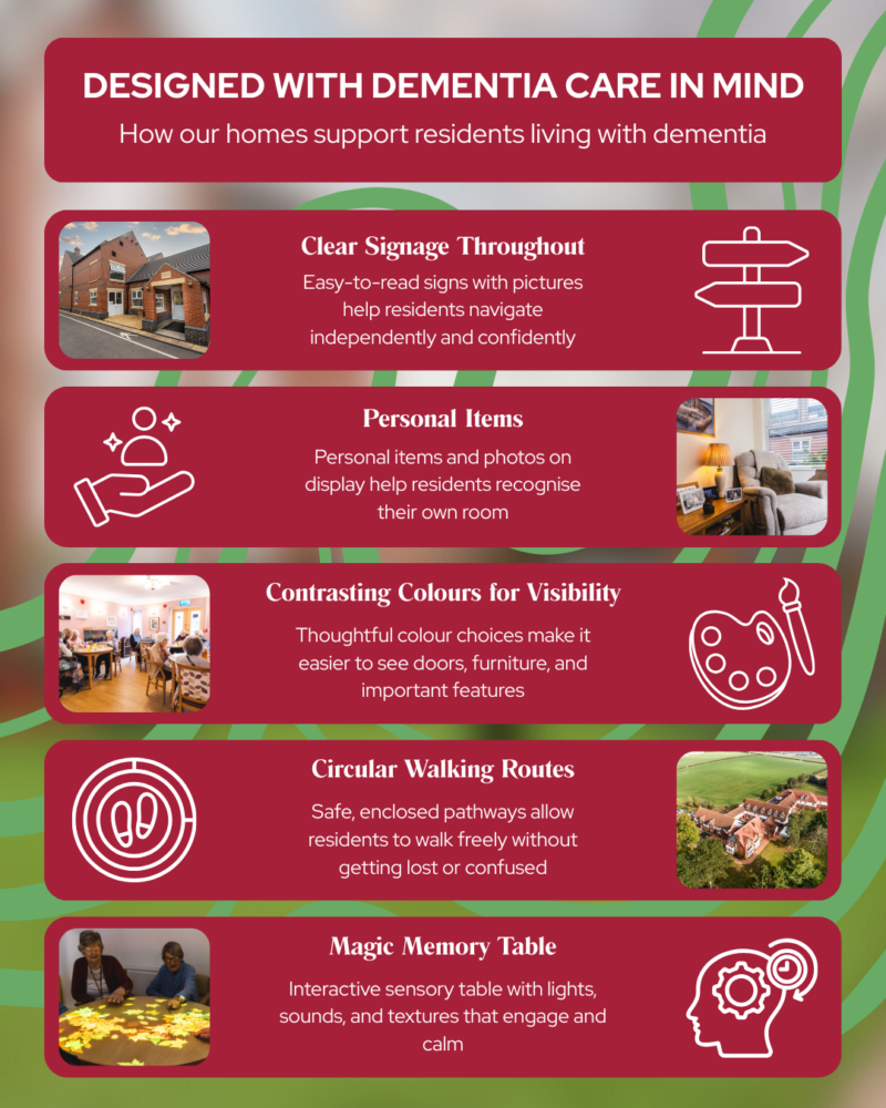 Our homes are purpose-built with dementia-friendly features that make a real difference…
